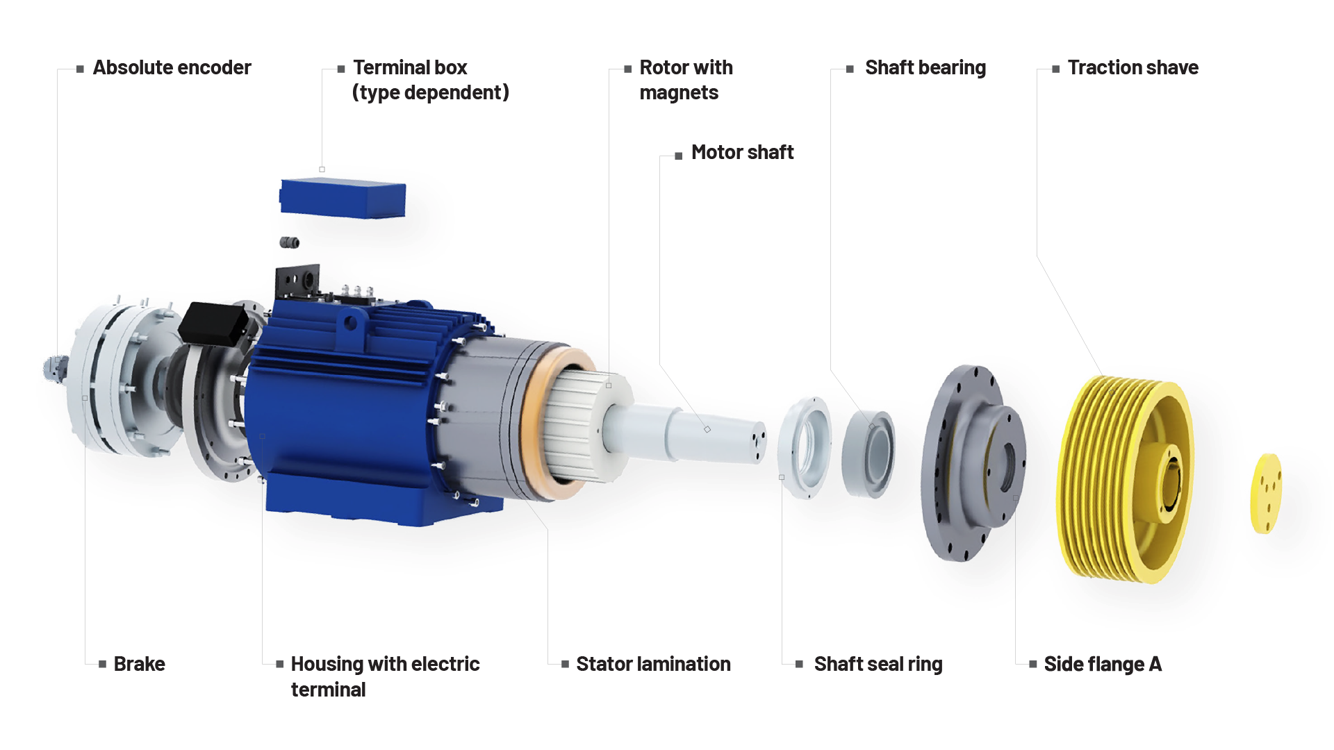 To be in sync with the Sanyo Lift JP product range, we have introduced a unified standard for systematizing between the Japanese and German technologies. Each assembled traction machine still has licensed tags to prove the level of quality and adaptability. The application of a synchronous traction machine without permanent magnet gears improves the utilization rate of the building and improves the driving performance of the elevator when moving.